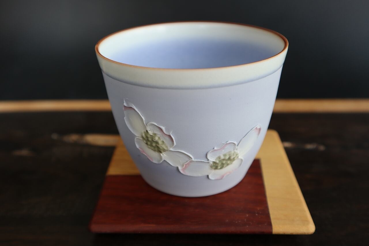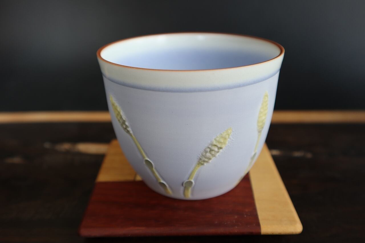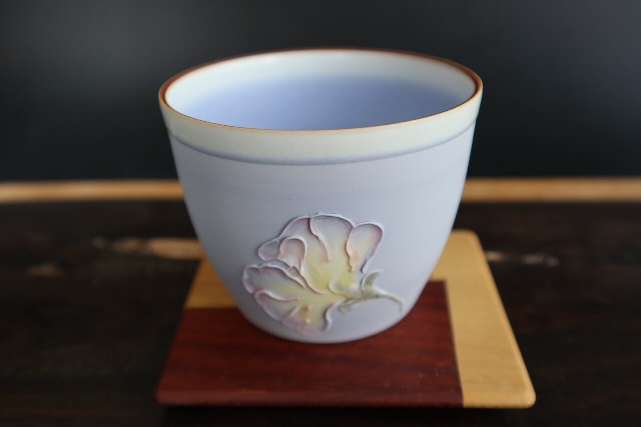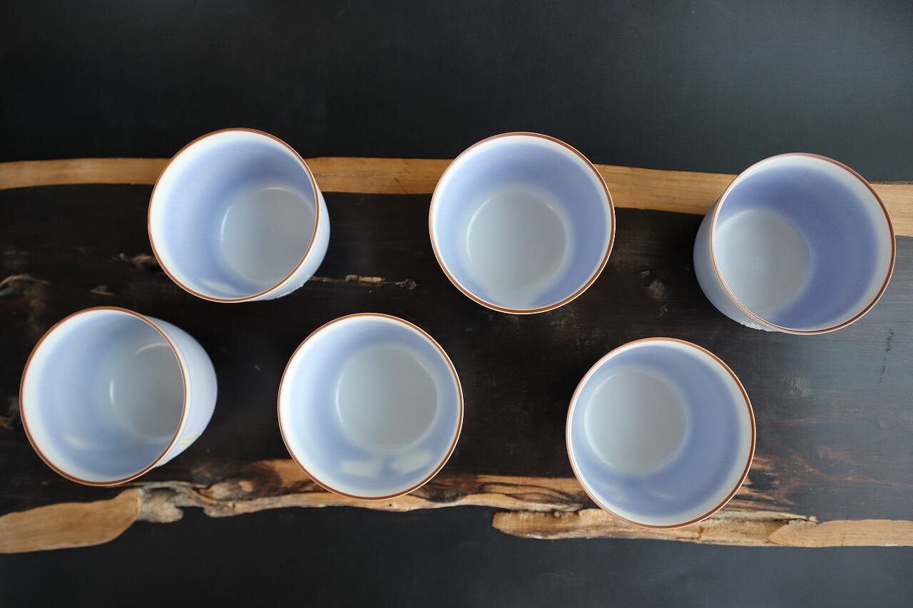 内側は艶消しの白磁釉で部分的に青く出ているのは
