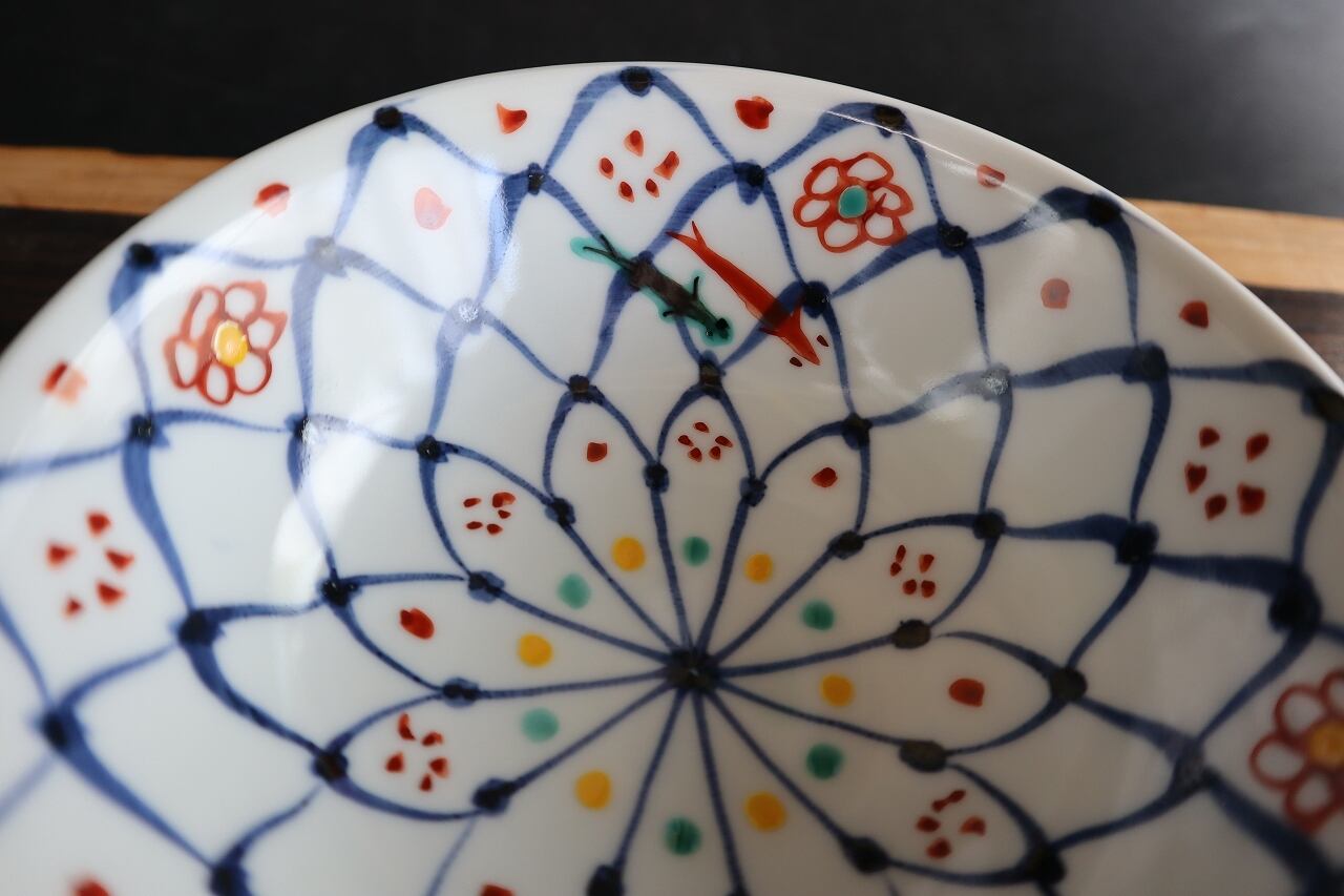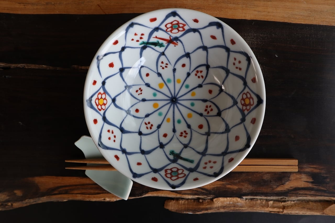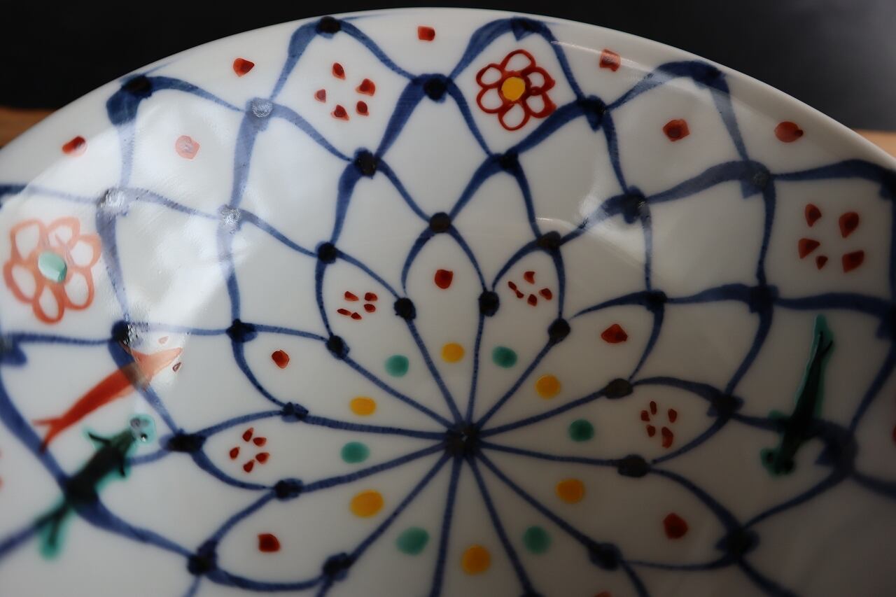 手作りロクロ成型、手描きの小鉢または玉割です。