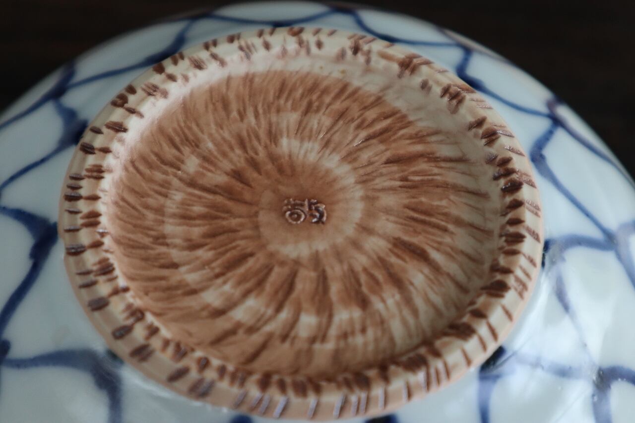中国明朝天啓時代の網目文様を呉須で太めに描き、