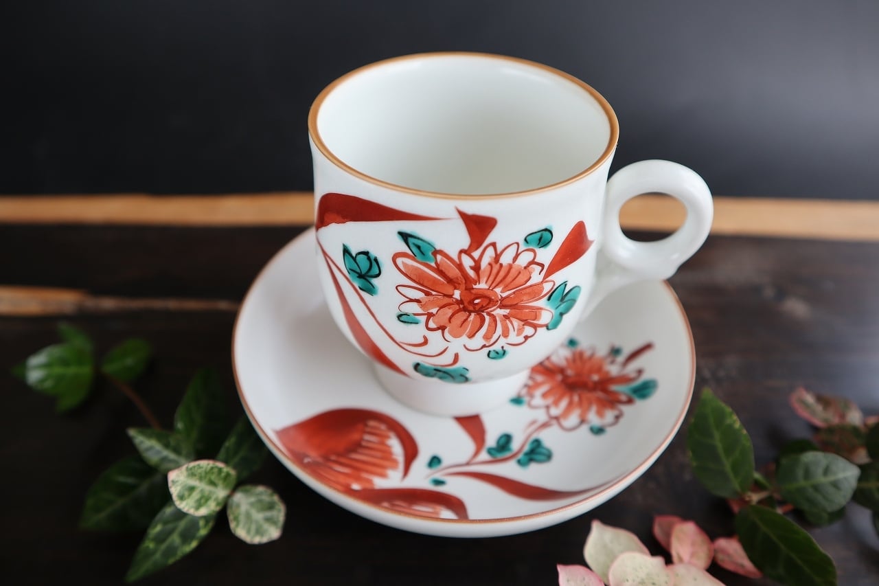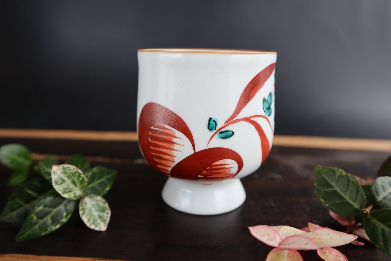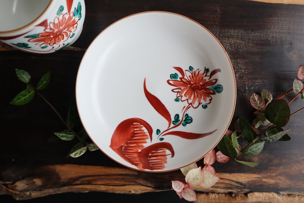 本焼き後、潁川赤絵を描き800℃で上絵焼成。
