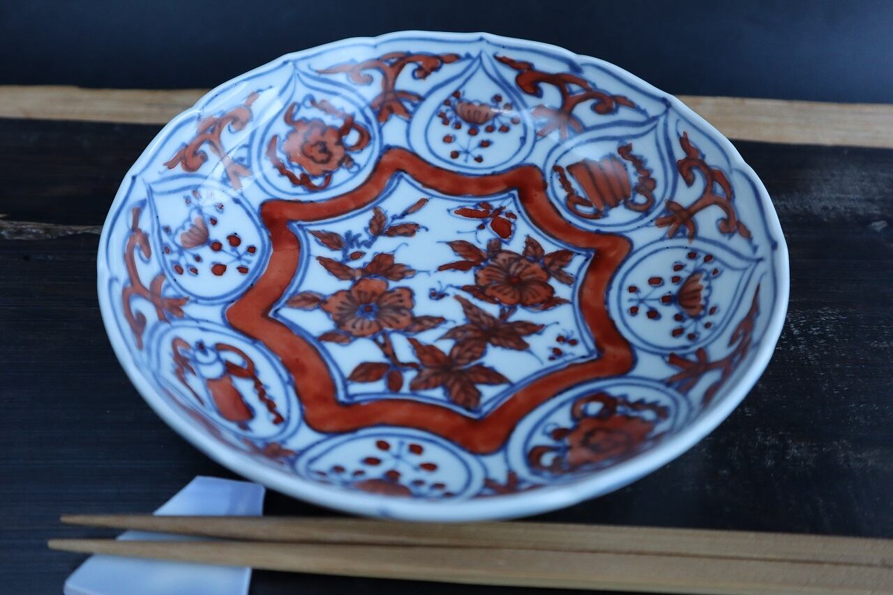 「染付赤絵花鳥文皿.4」です。