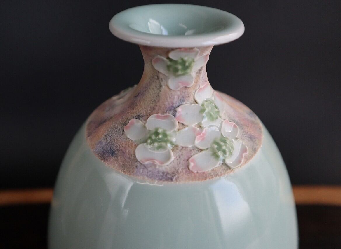 青磁と彩磁、違う表情を持つこの花入れは、まさに何年も愛用していただける、