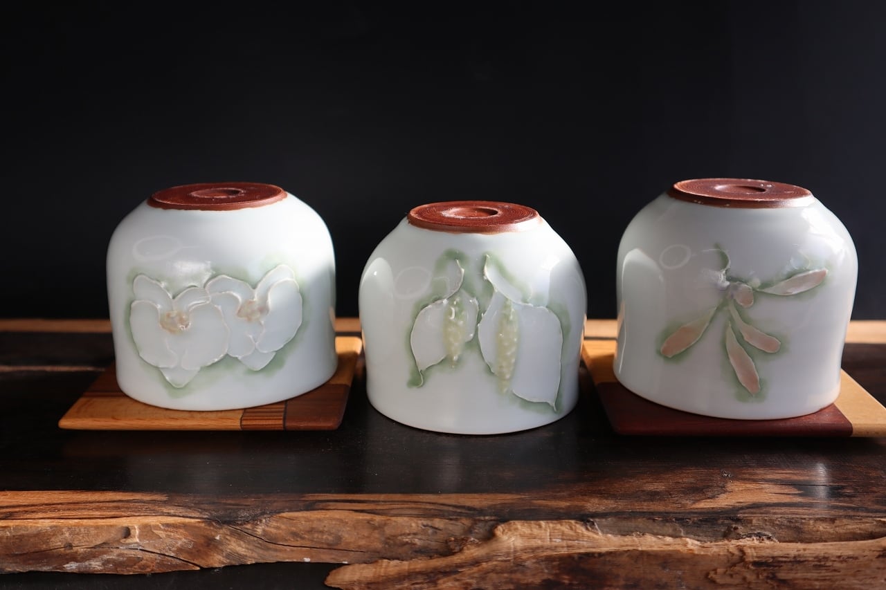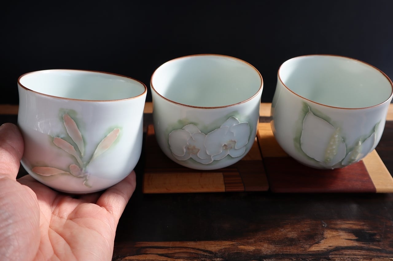 花文えくぼカップ(胡蝶蘭.水芭蕉.春蘭)
