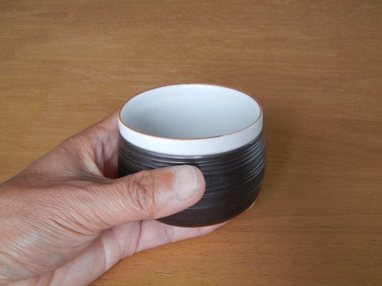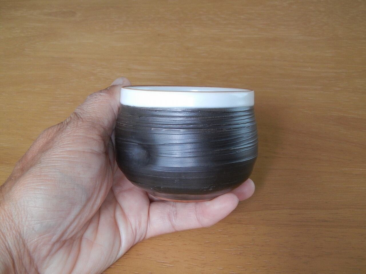 素材は磁器で外側は黒彩にして焼締め(無釉)で1260℃で還元焼成してあります。