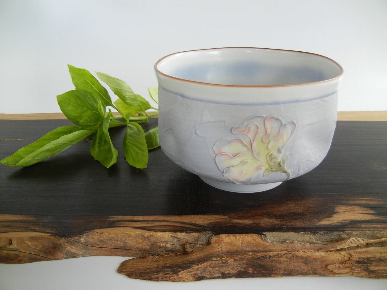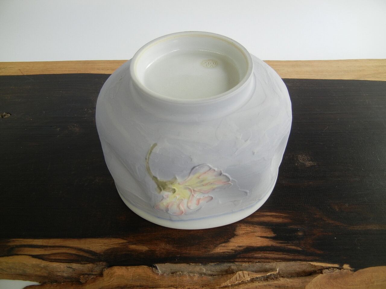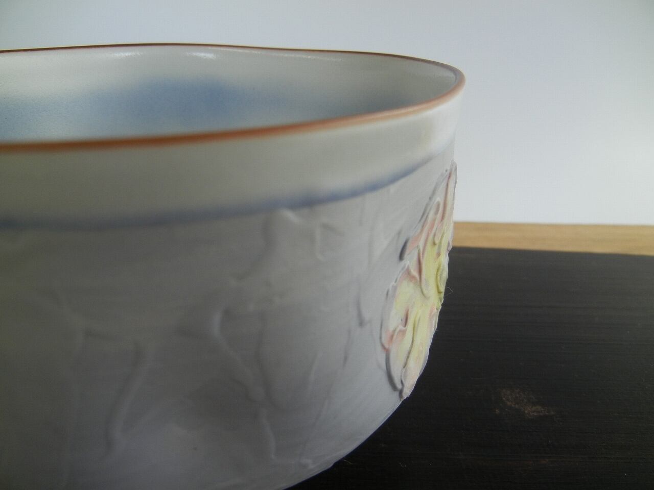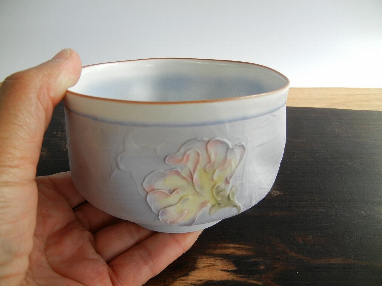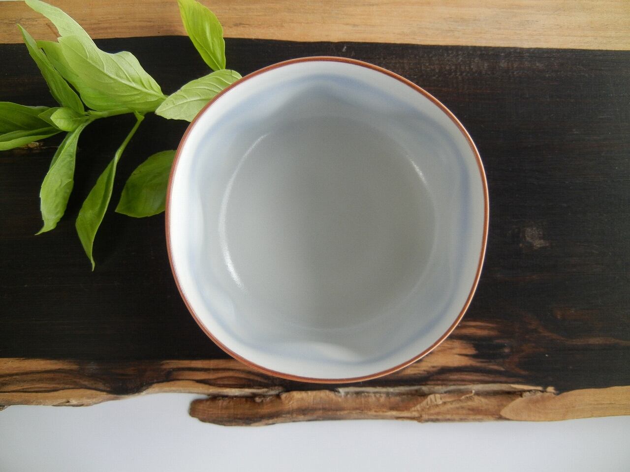 内側は艶消しの白磁釉で部分的に青く出ているのは