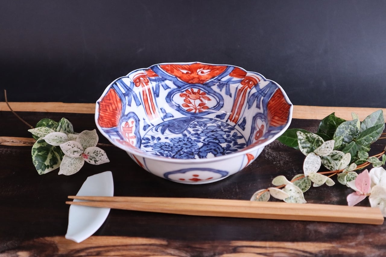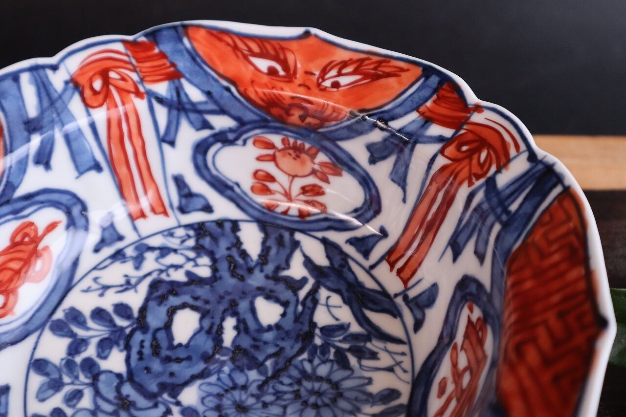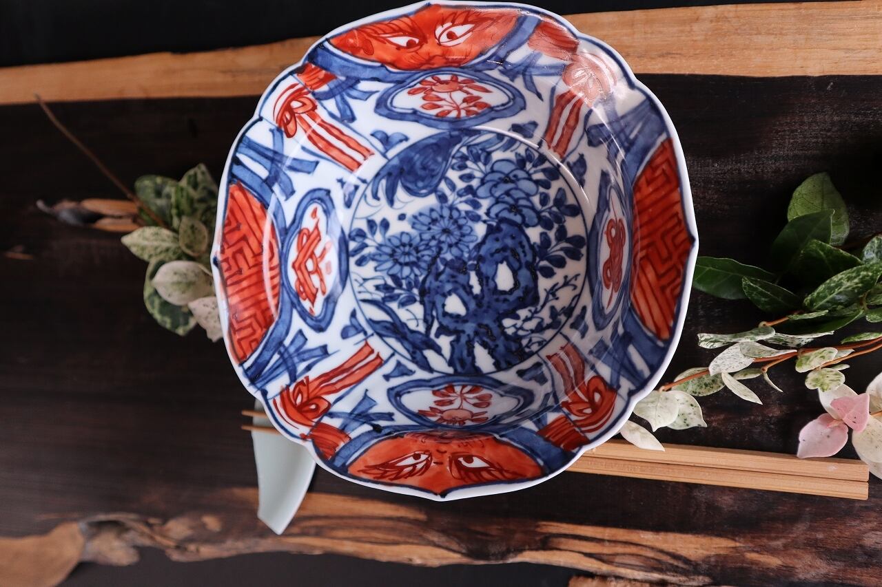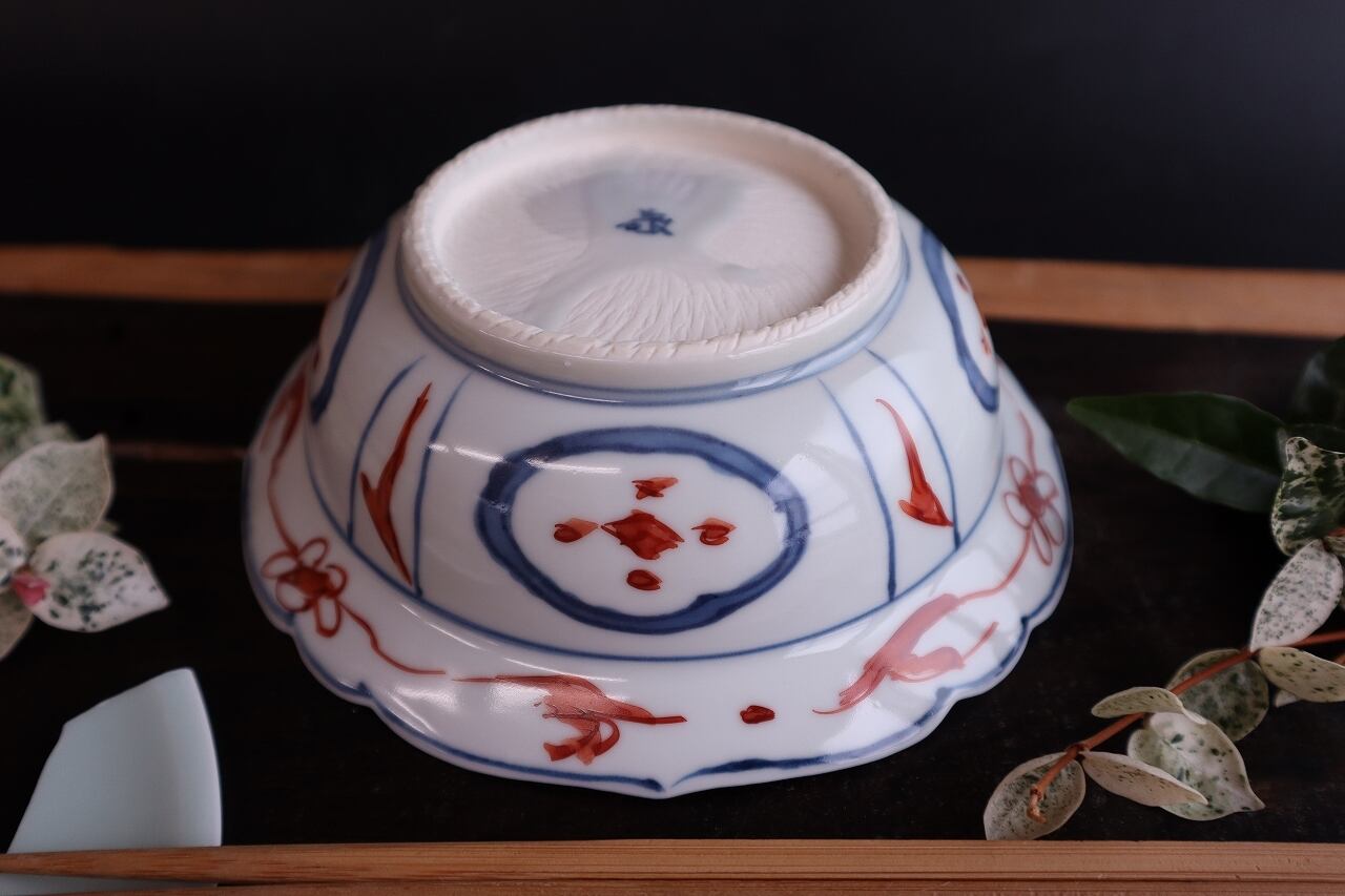染付赤絵芙蓉手岩花文兜鉢・1