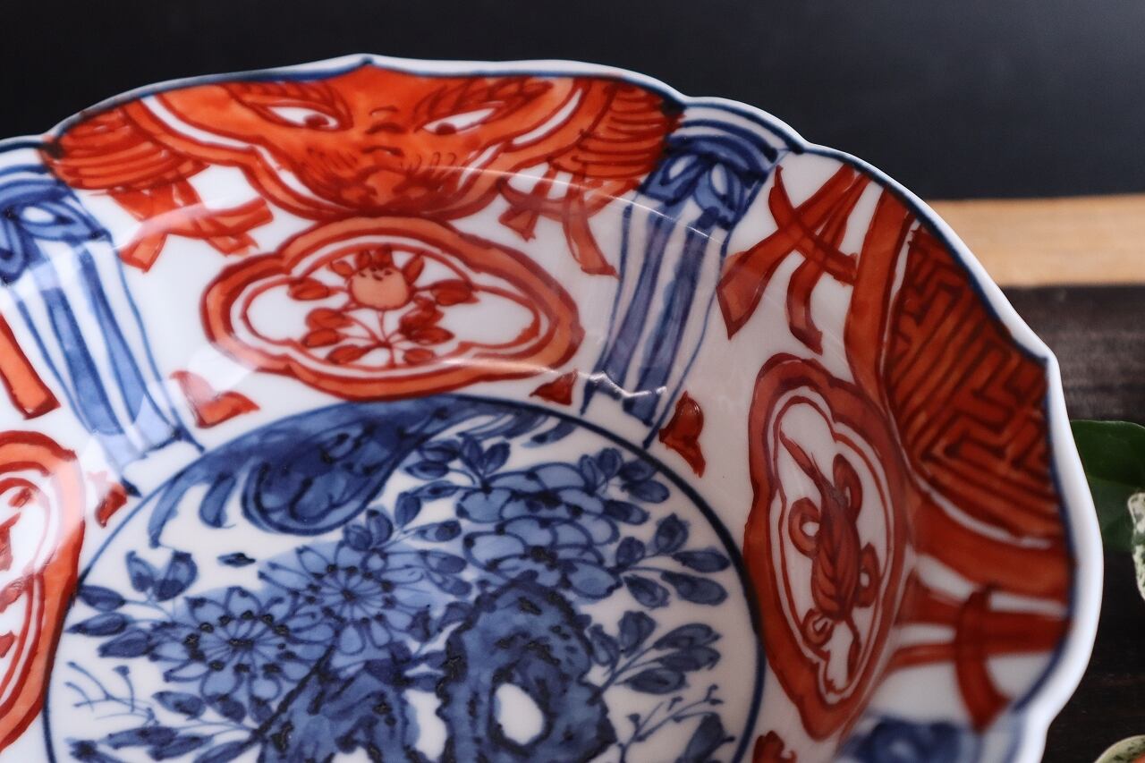 (中心部を染付、縁一部赤絵)