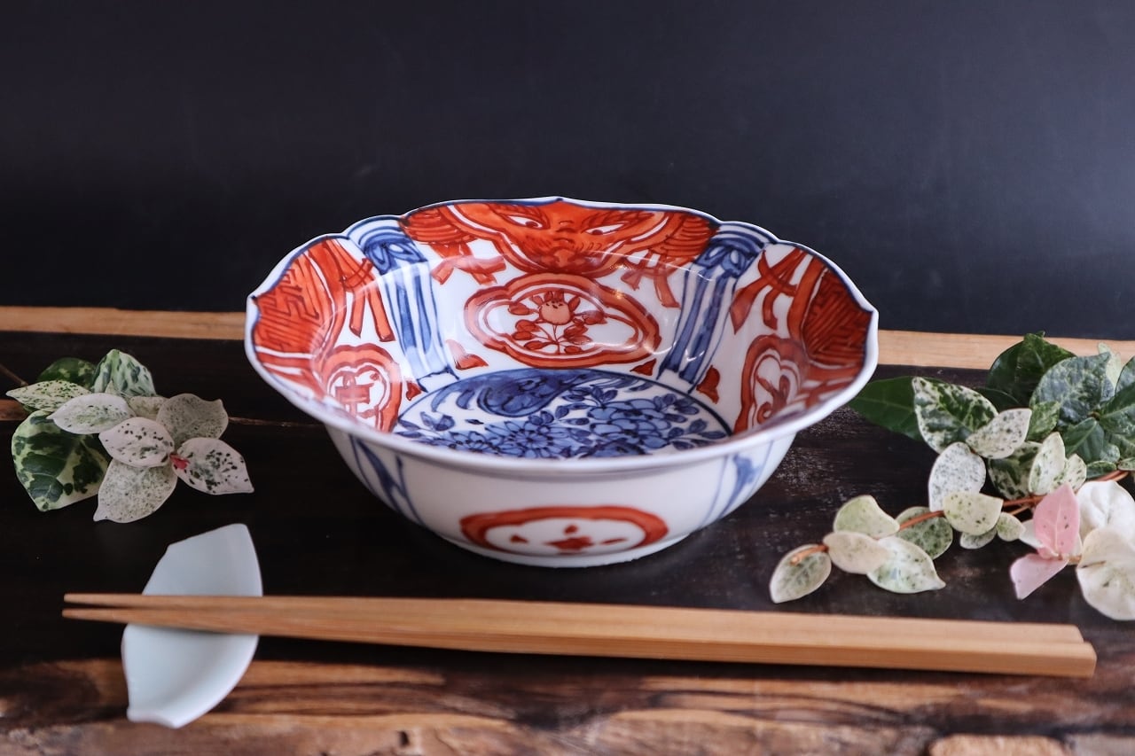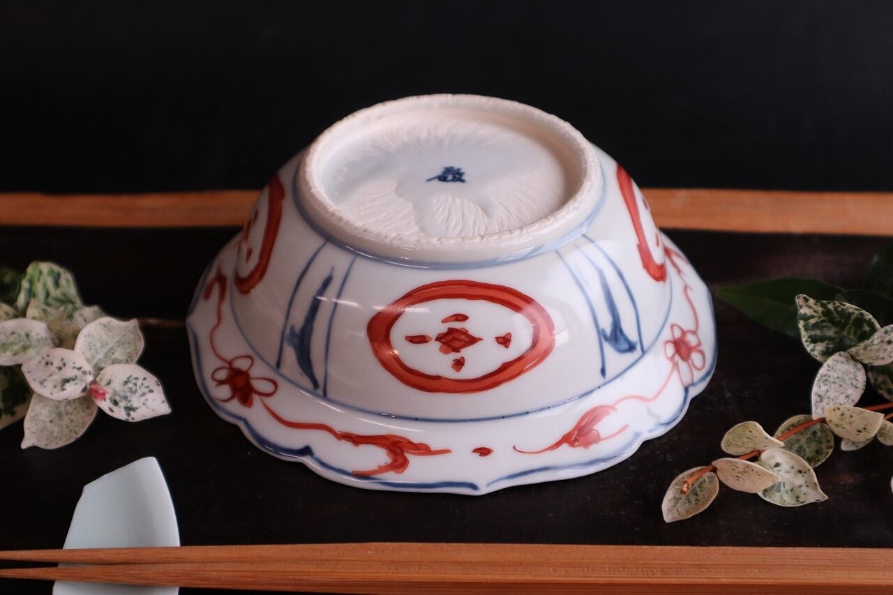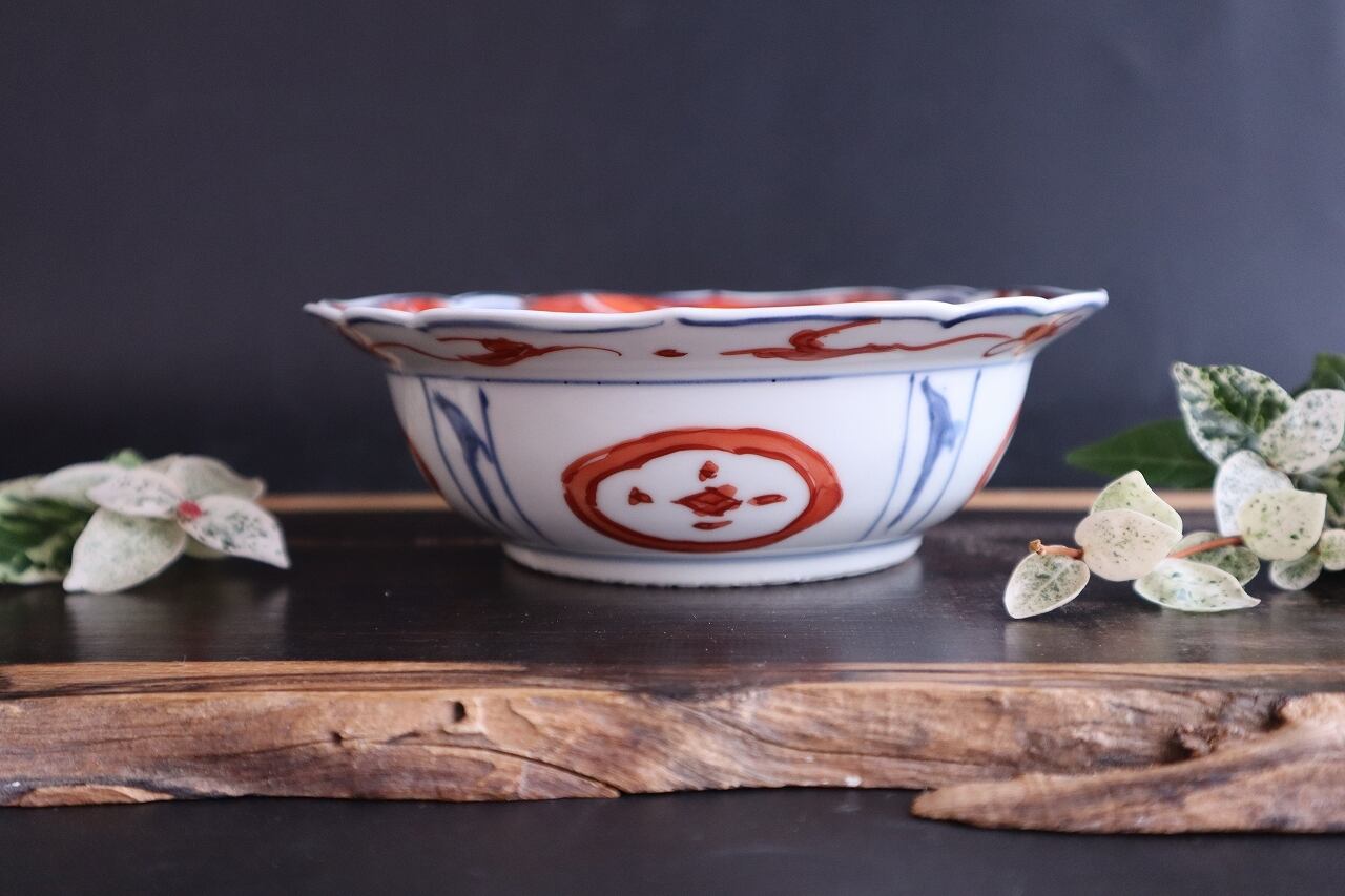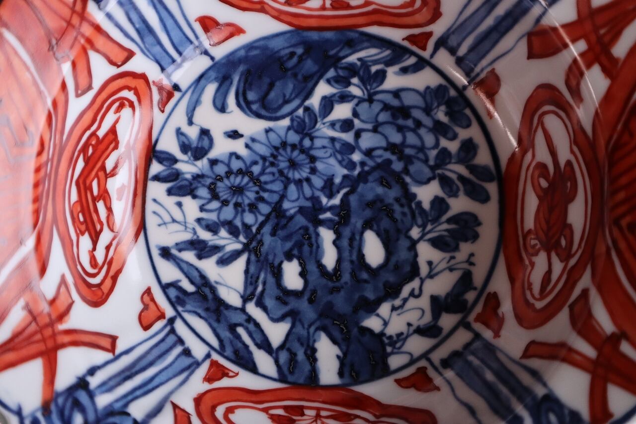 染付赤絵芙蓉手岩花文兜鉢です。
